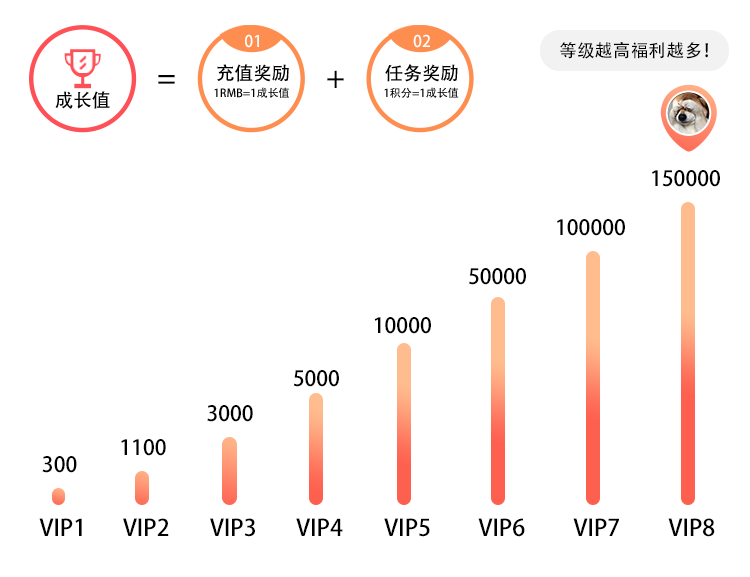 玩家充值可获得成长值,每充1元人民币,可获得1个成长值。